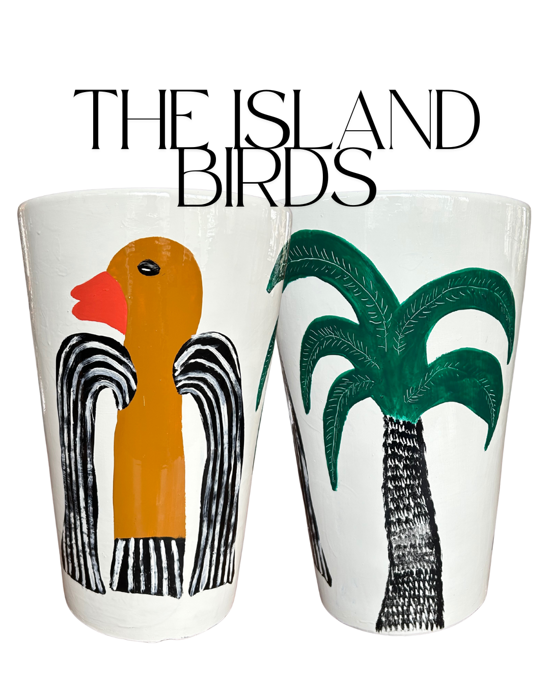 A Hop's Vase! An old vase that we found on the streets in Amsterdam Zuid and handpainted with birds and a palmtree it is an eclectic, tropical eye catcher for your flowers.